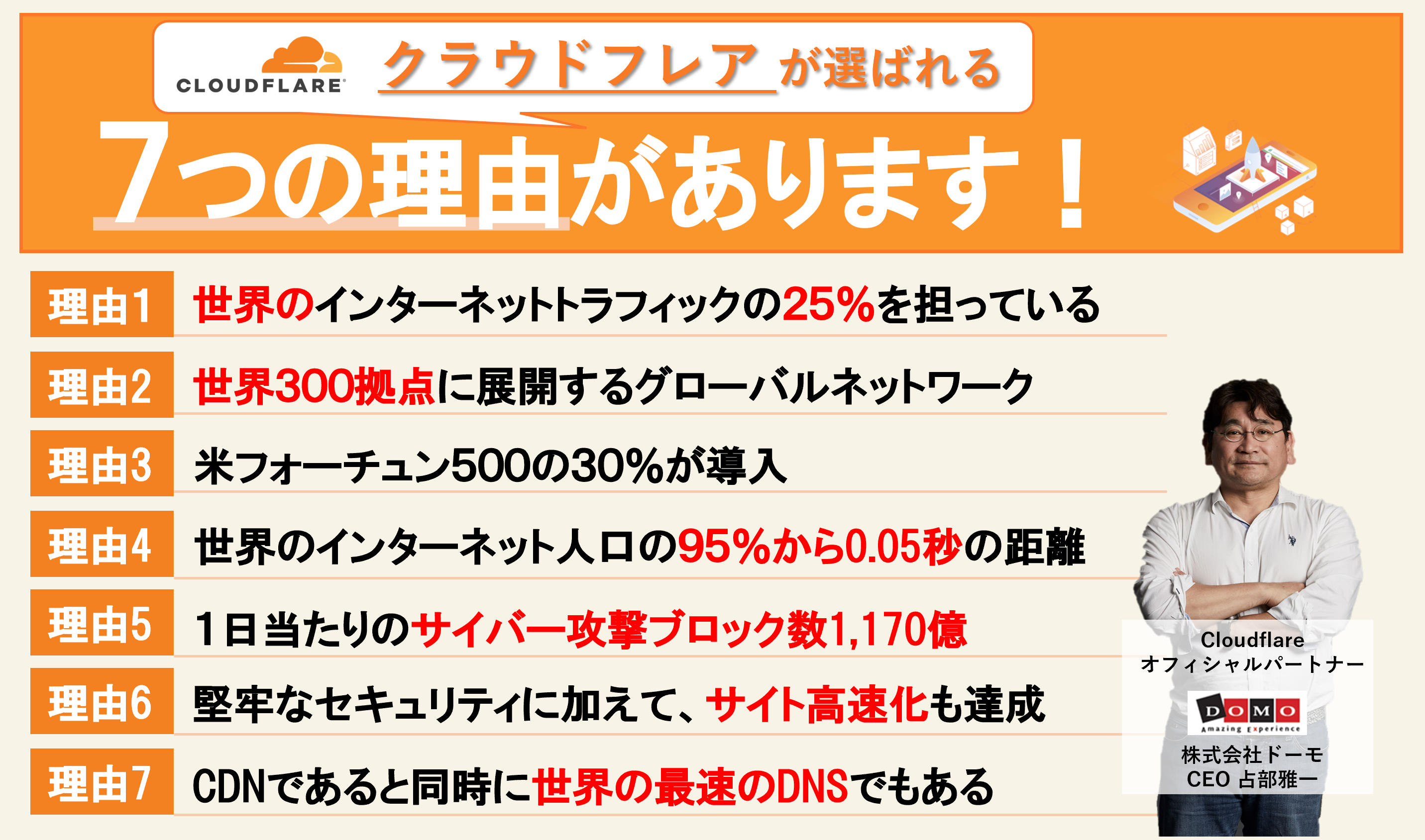 Cloudflareオフィシャルパートナーである株式会社DOMO代表の占部が、