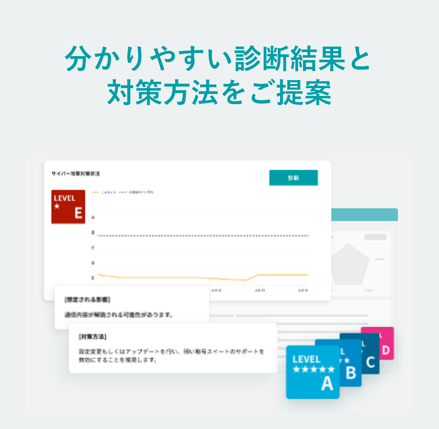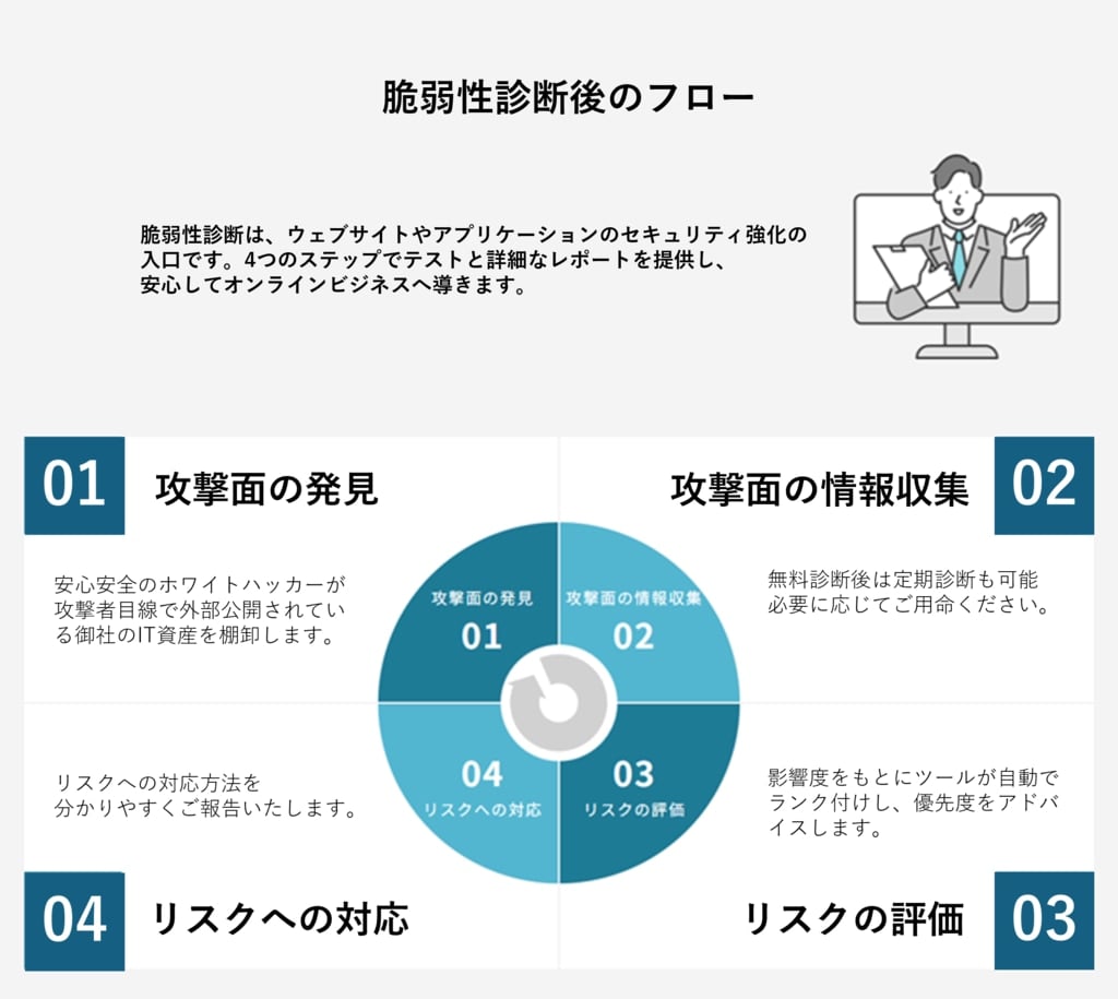 プラットフォーム診断だけでなく、WEBアプリ診断、クラウド診断にも対応しています。パッシブスキャンはもちろん、アクティブスキャンも実行可能。より精緻な分析で、隠れたリスクを明らかにします。