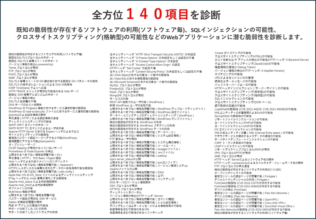 既存のプラットフォーム診断は網羅的に全てのポートやサービスを参照し診断を行いますが、 |