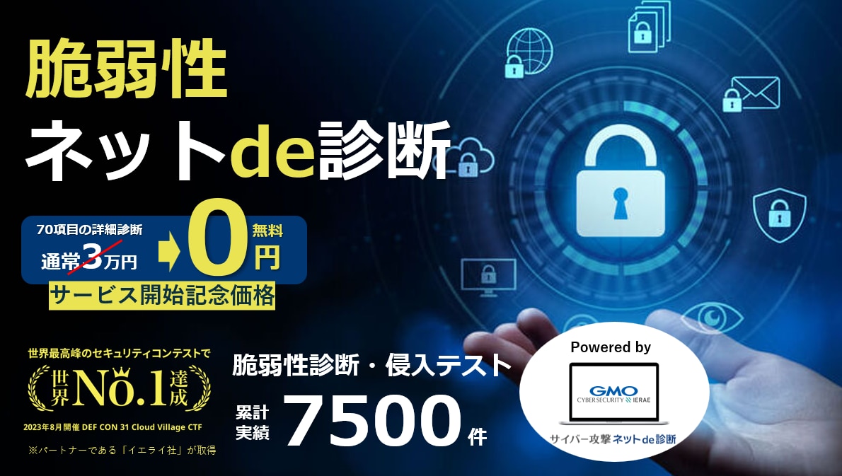 世界一を獲得したセキュリティ技術に裏付けされたセキュリティ診断です(イライエ社)。金融機関、電機メーカー、IT企業、ゲームメーカーなど7500件の実績が信頼性を裏付けています。
